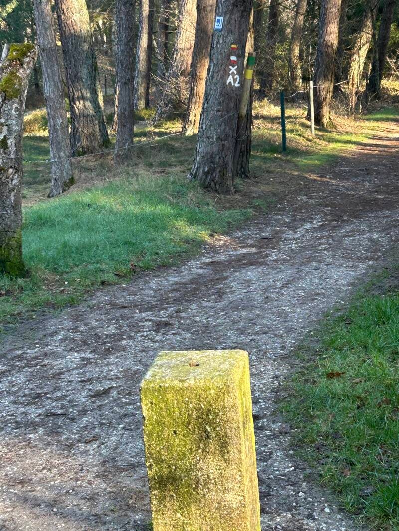 De grijze steen. Zo heet deze plek. Eén van de oude grensstenen van meer dan 400 jaar oud. Een stukje verder staat de Witte Stein. Elke paar honderd meter is de grens gemarkeerd met een "nieuwe" grenssteen uit midden van de 19e eeuw. Nieuw is dus een beetje relatief. 😊