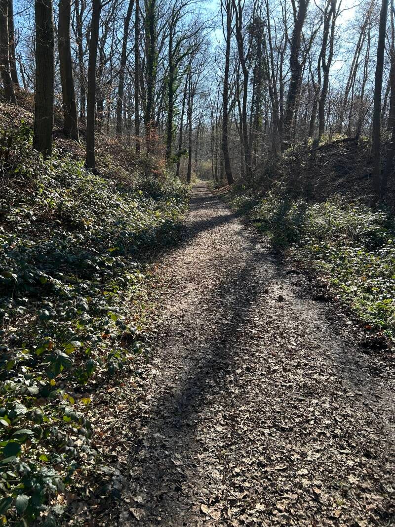 Soms bovenop op smalle paadjes en soms beneden op de Prinsenweg. Is het eerst nog fris met een graad of 5, al snel stijgt de temperatuur en gaat eerst het jasje uit en daarna het vest. Wat een prachtig weer vandaag!!