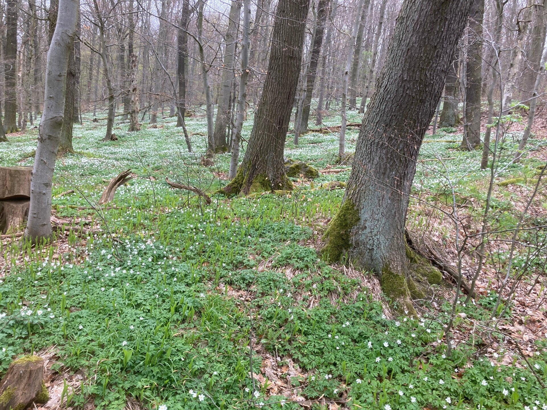 Vandaag ook weer veel bloemen. Voor het eerst zagen we gele bosannemonen. De bossen ruiken heerlijk fris naar daslook. Hier en daar de eerste bloemetjes. Witte klaverzuring.